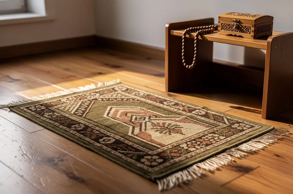 - Définir une zone exclusive dans la chambre ou le salon pour regrouper et protéger tous les accessoires de prière.