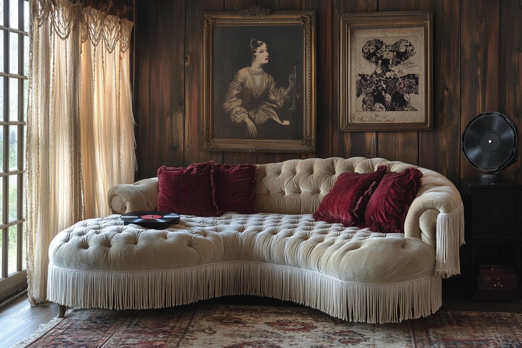 Pour apporter cette touche d’opulence caractéristique des années folles chez vous, commencez par privilégier certains matériaux. Le velours est une excellente option pour les canapés, les rideaux et même les coussins. Son apparence riche et sa texture douce ajoutent instantanément du prestige.