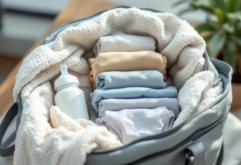 Glissez aussi quelques vêtements de rechange dans une pochette étanche pour parer à tout accident ou changement de météo soudain. Un body, un pyjama léger, des chaussettes et un bonnet selon la saison permettent d’anticiper toutes les situations.